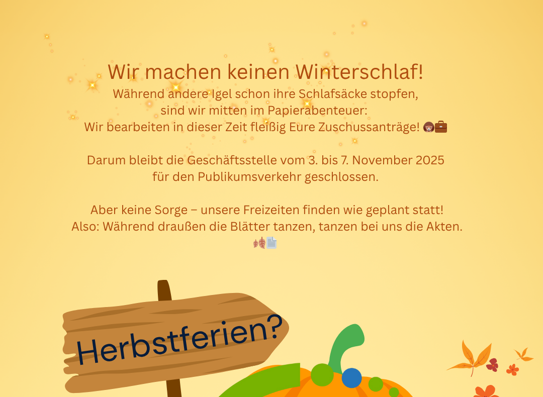 Die Geschäftsstelle bleibt daher von Freitag, den 19.12.2025, bis einschließlich Dienstag, den 06.01.2026 geschlossen.